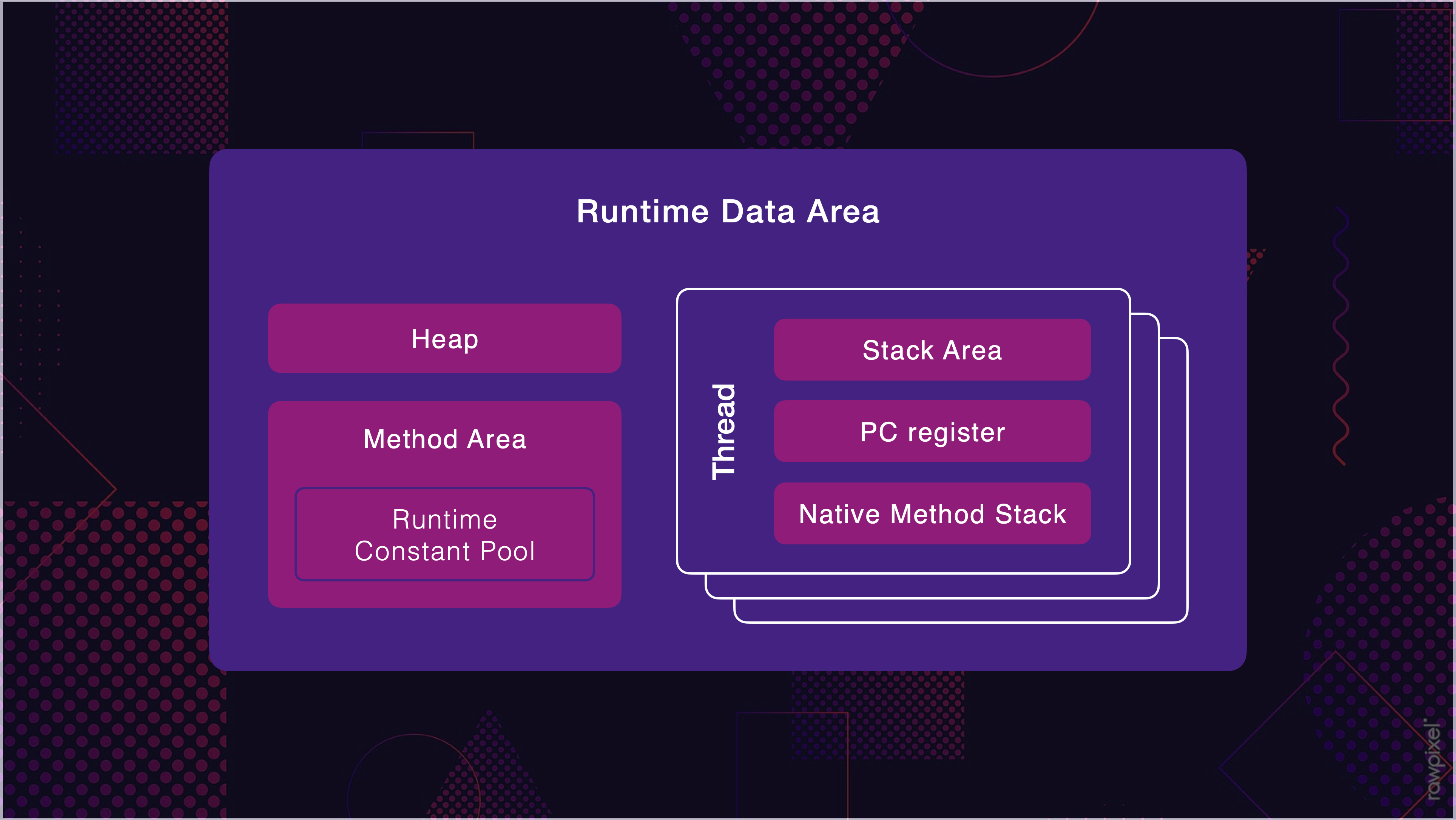 JVM의 메모리 영역으로 자바 애플리케이션을 실행할 때 사용되는 데이터들을 적재하는 영역이다